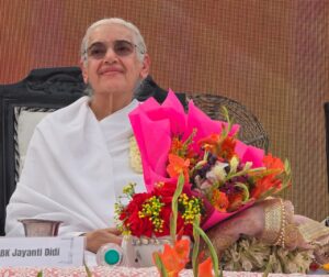 From Mount Abu, Additional Chief Administrator *Rajyogini Jayanti Didi* inspired the audience to practice Raja Yoga meditation to strengthen the power of positive thoughts. She said, “We souls share an eternal bond with the Supreme Being. True peace comes when we withdraw from the illusion of position, prestige, and possession, and connect our mind to the sweet remembrance of the Supreme.” This divine connection, she explained, naturally reflects in our behavior as peace, love, tolerance, and excellence