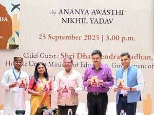 Union Education Minister Shri Dharmendra Pradhan on Thursday launched the book “Living The Vivekananda Way – Practical Spirituality For Modern India”, co-authored by young writers Dr. Ananya Awasthi and Dr. Nikhil Yadav, at a special ceremony held at Shankarlal Hall, Delhi University (North Campus).